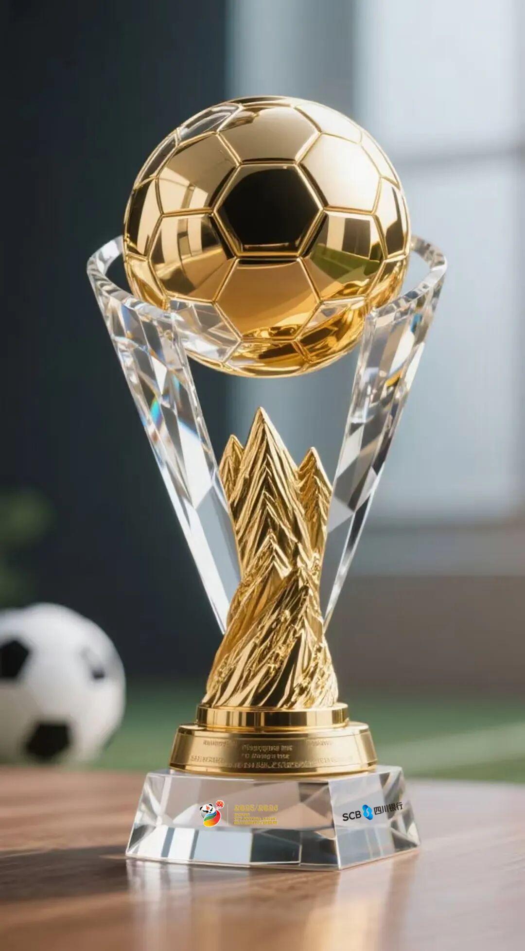 奖杯设计既以璀璨的金色足球点明主题,更以水晶与山峰交融的造型,寄寓着“勇于攀登、问鼎巅峰”的体育精神。材质上一刚一柔,造型上传统与现代并重,实现了荣誉传承与审美创新的平衡。