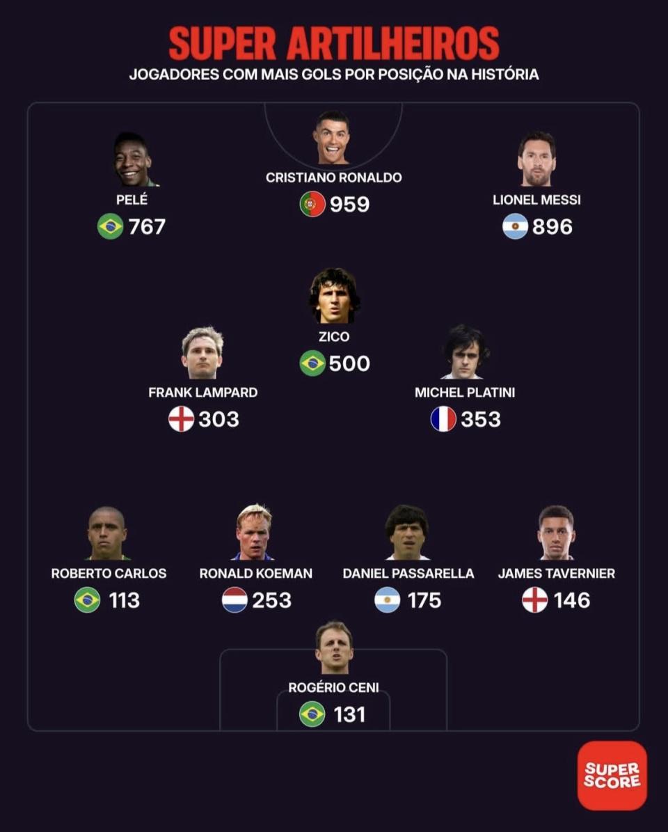 最近Super Score发布了《超级射手:历史各位置进球最多的球员》这份名单。C罗、梅西、贝利、济科、普拉蒂尼、兰帕德这些名字都在里面,光看阵容就已经是“火力堆满”的感觉。可像马拉多纳、克鲁伊夫、范巴斯滕这类同样以进攻闻名的传奇,在这张图里却没出现。只论进攻火力,把这套“各位置最能进球的人”拼在一起,真能算最强进攻阵容吗?